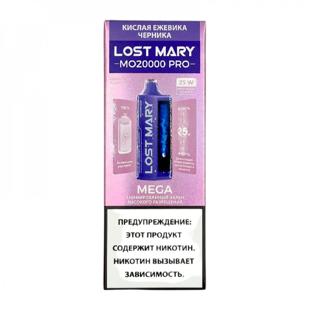 Аромат/вкусКислая Ежевика Черника БрендLOST MARY ВидLOST MARY MO 20000 Pro
